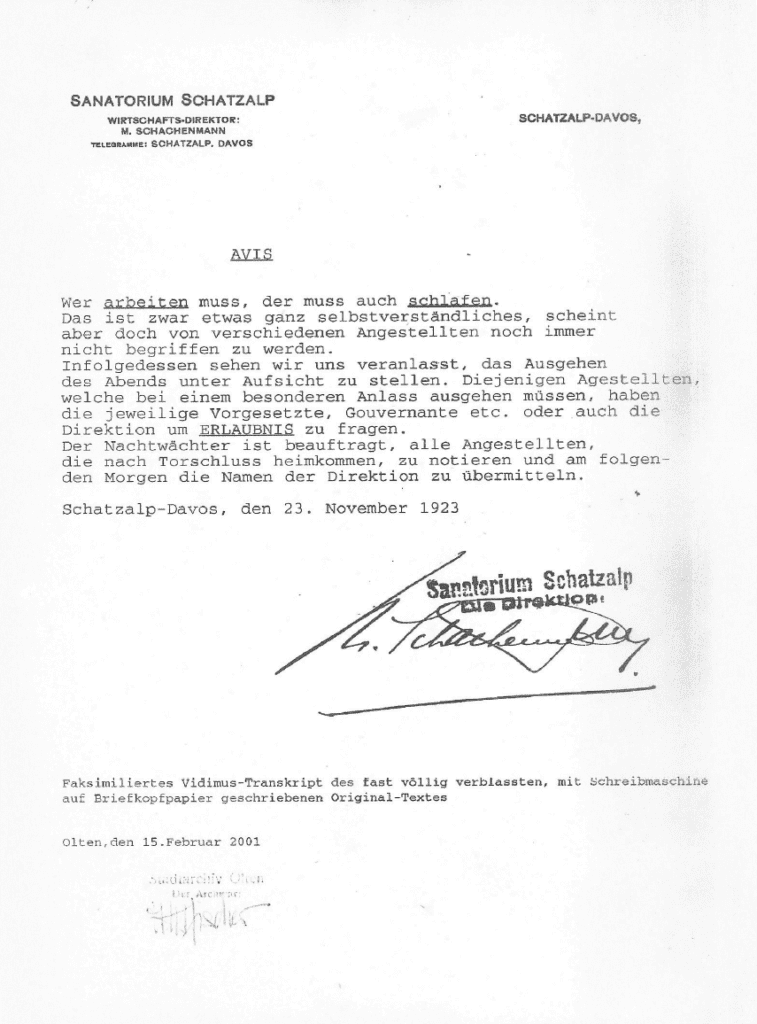 This letter was written on November 23, 1923. At that time the rule was “If you have to work, you have to sleep”.