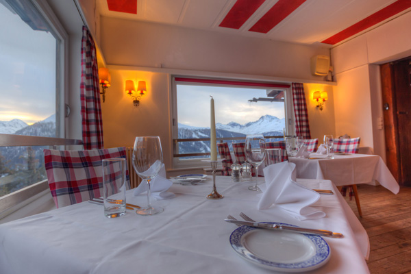 Der Name ist Programm: Während Sie regionale und internationale Spezialitäten geniessen, öffnet sich vor Ihnen ein unvergleichlicher Blick über die Davoser Bergwelt. Hier treffen Genuss und Aussicht auf höchstem Niveau zusammen.